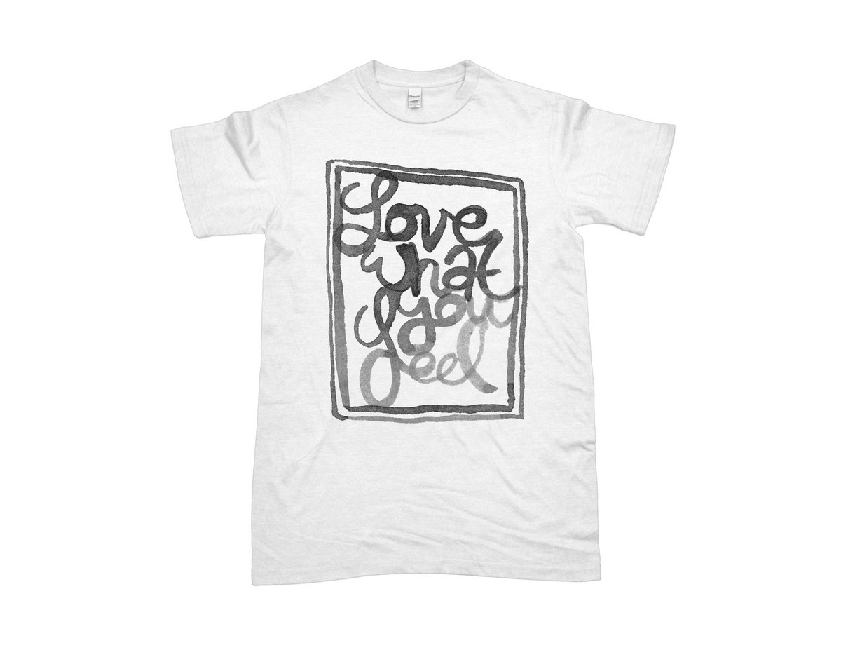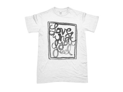 Love What You Feel T Shirt in White, with Black water based ink for a super soft feel. Printed in USA.