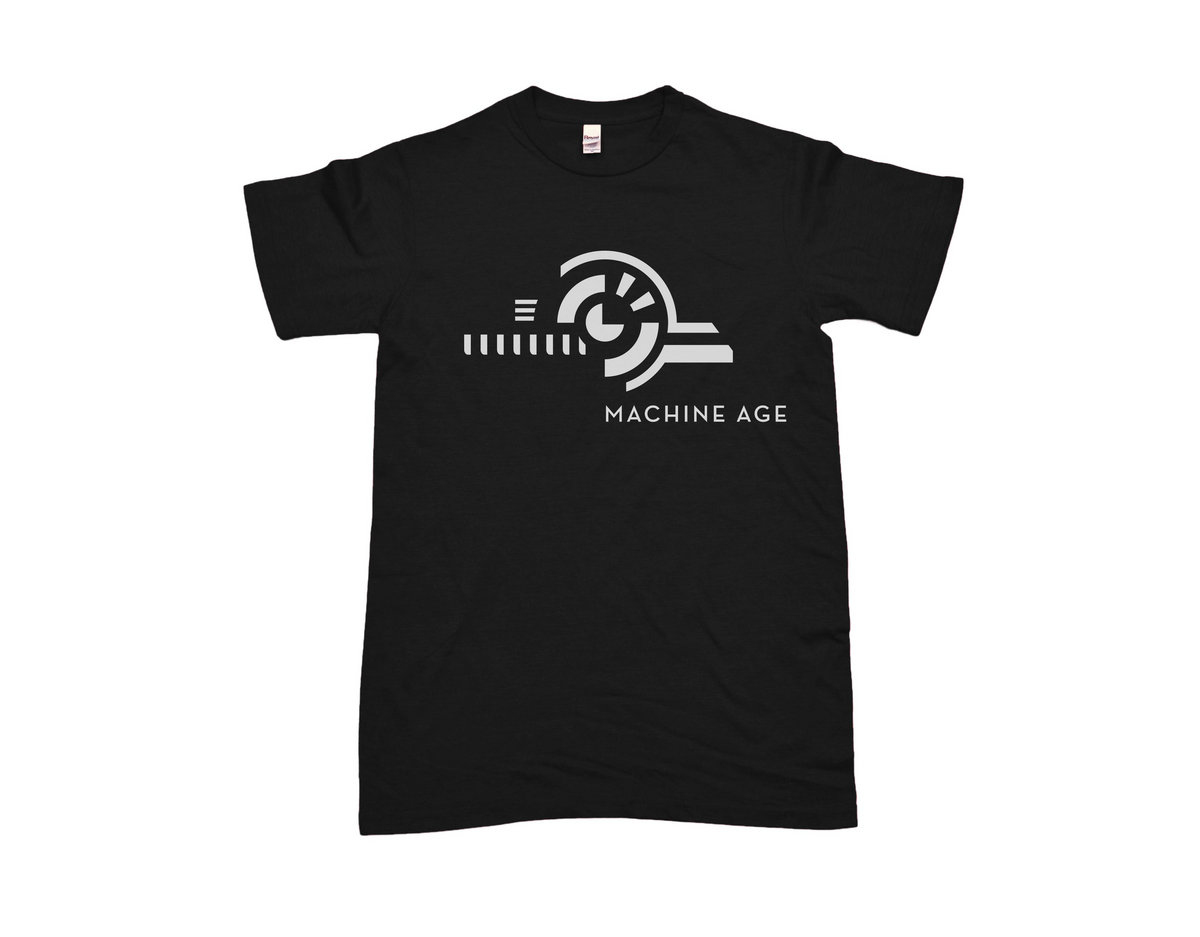 Machine Age Records T Shirt in Black, with white water based ink for a super soft feel. Printed in USA.